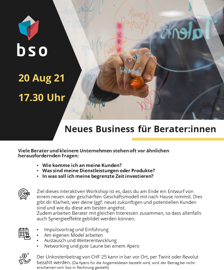 Der Unkostenbeitrag entfällt für bso-Mitglieder, da wir es online durchführen